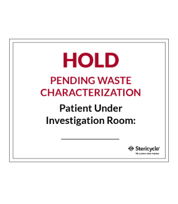 Print-ready resource and affix per hospital policy to waste containers while awaiting patient diagnosis. We recommend you label waste per Ebola waste requirements only after a patient’s diagnosis is confirmed. Management of regulated waste stemming from Ebola patient care is more costly for the hospital and requires a unique handling method for Stericycle and our partners.