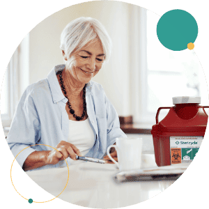 Stericycle’s Patient Support Program provides a safe and convenient solution to manage in-home patient-generated sharps for your injectable therapies in 4 ways: